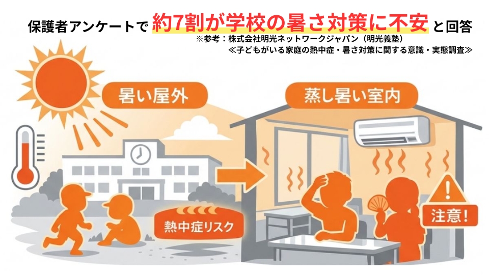 これは、学校や自治体の対応が不十分ということではなく、気候条件の変化により、学校施設のあり方そのものを見直す必要性が高まっている状況を示しています。