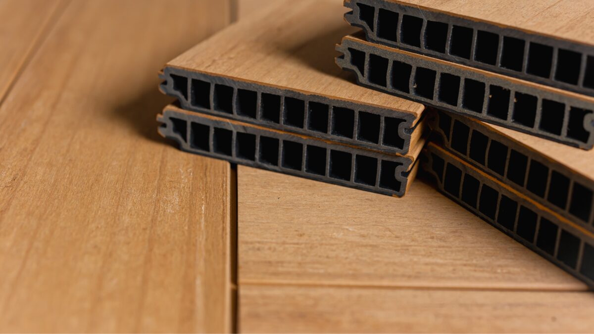 天然木の風合いでつくりたかったが、メンテナンスにかかるコストを考えると人工木の方が良い。